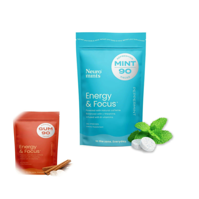 NeuroGum Extra Strength Energy & Focus Gum (90 Count Bag, Peppermint/Cinnamon) | 100mg Natural Caffeine + L-Theanine + Vitamin B12 & B6 + Xylitol | Sugar Free Nootropic Cognitive Brain Performance Supplement